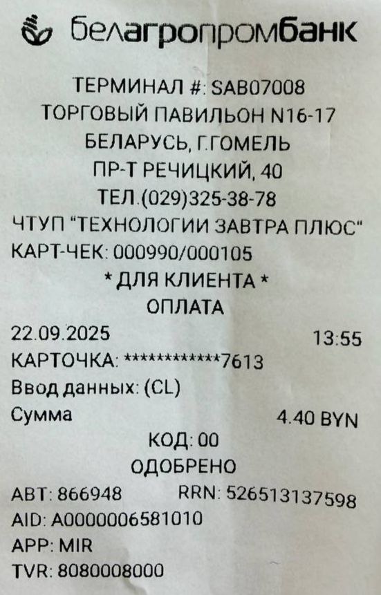 Оплата производится наложенным платежом (оплата по факту получения товара на дом или в отделениях РУП «БелПочта») + стоимость доставки согласно тарифам РУП «БелПочта».