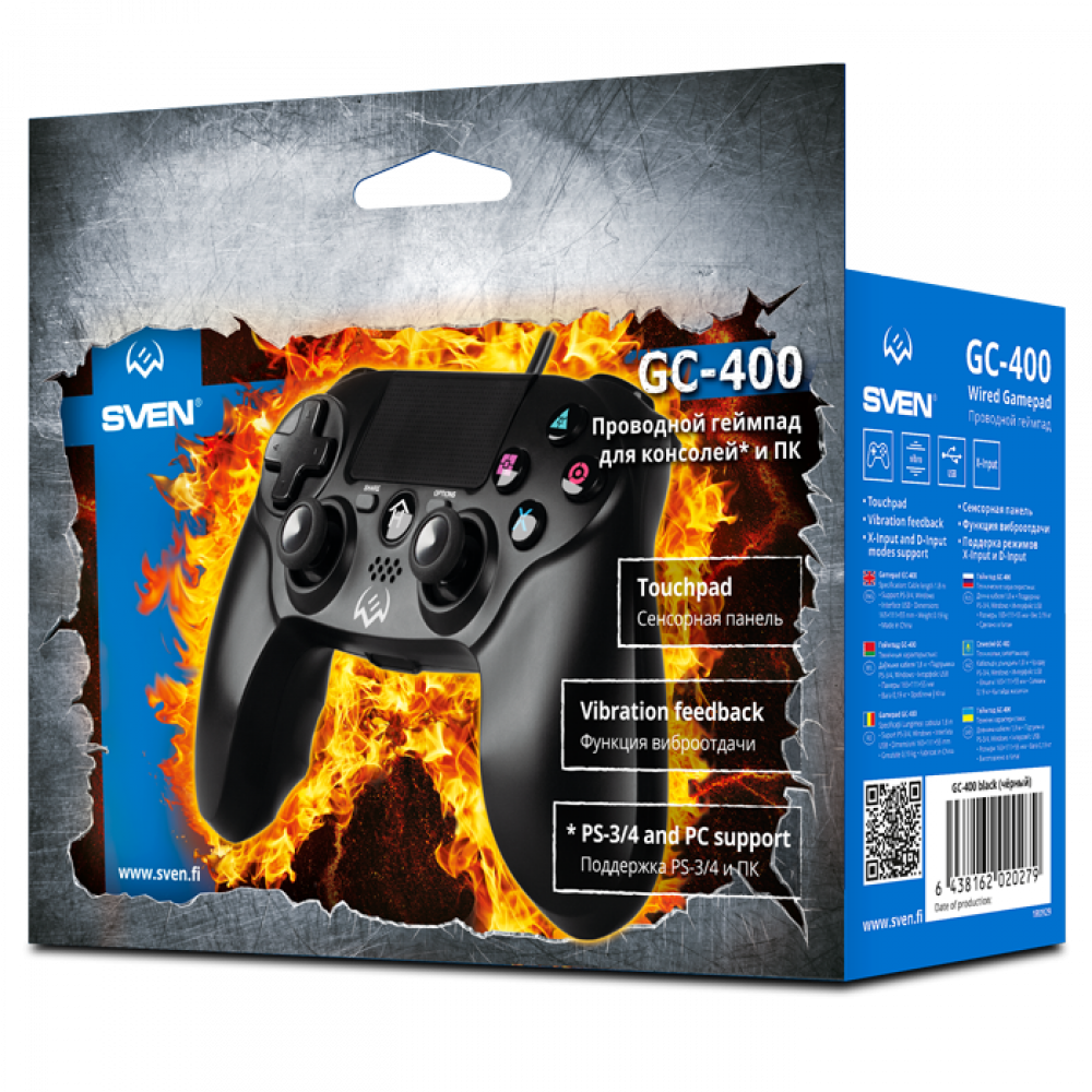 Бюджетное решение, в котором есть все необходимое. Так вкратце можно описать SVEN GC-400. Этот проводной геймпад рассчитан на работу с приставками PlayStation 4, однако может прекрасно работать и с ПК под управлением последних версий Windows, а также консолями PlayStation 3. Подключение осуществляется через USB-порт, длина гибкого и надежного кабеля — 1,8 метра, ее будет достаточно большинству пользователей.