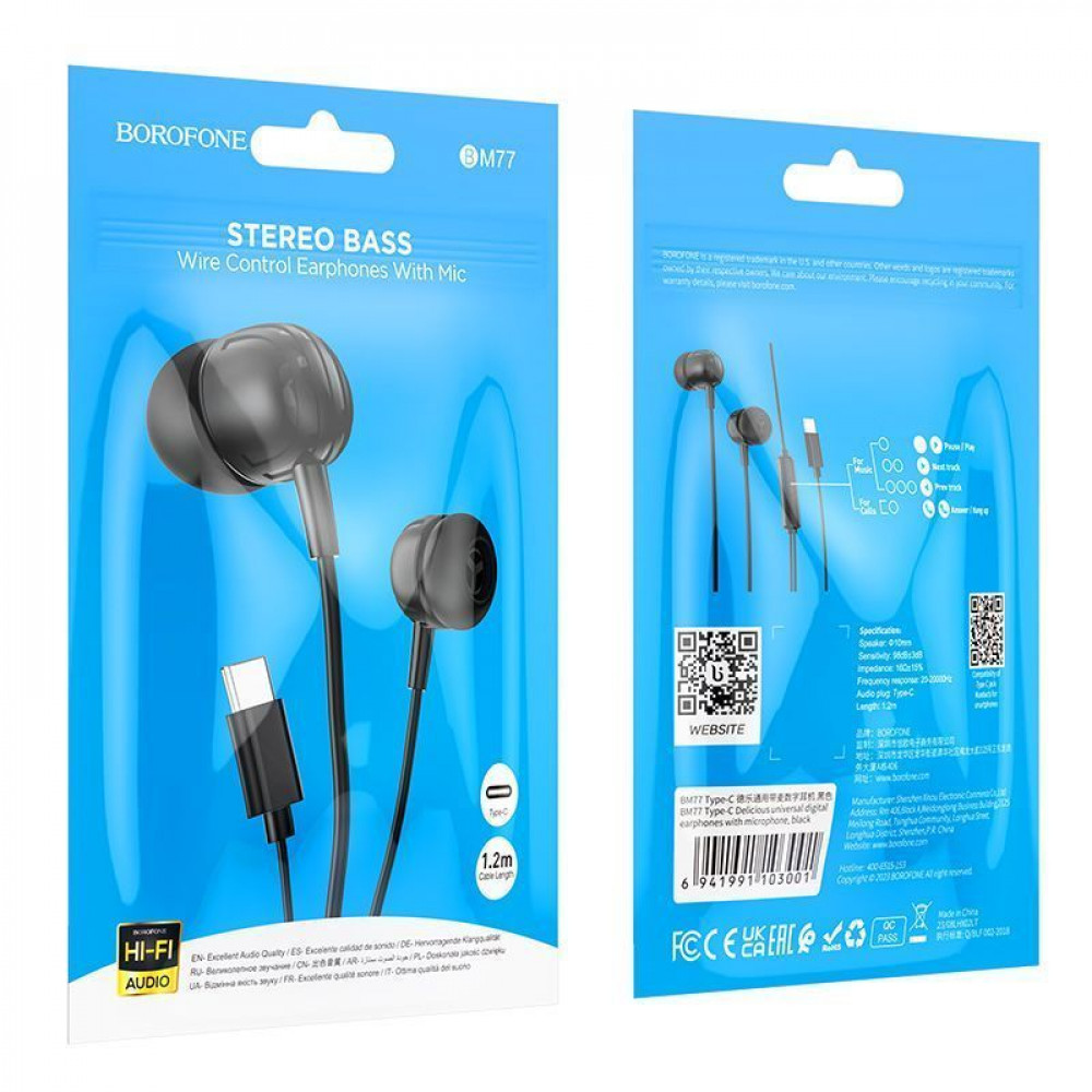 Технические характеристики Наушники Borofone BM77 USB Type-C (черный)
