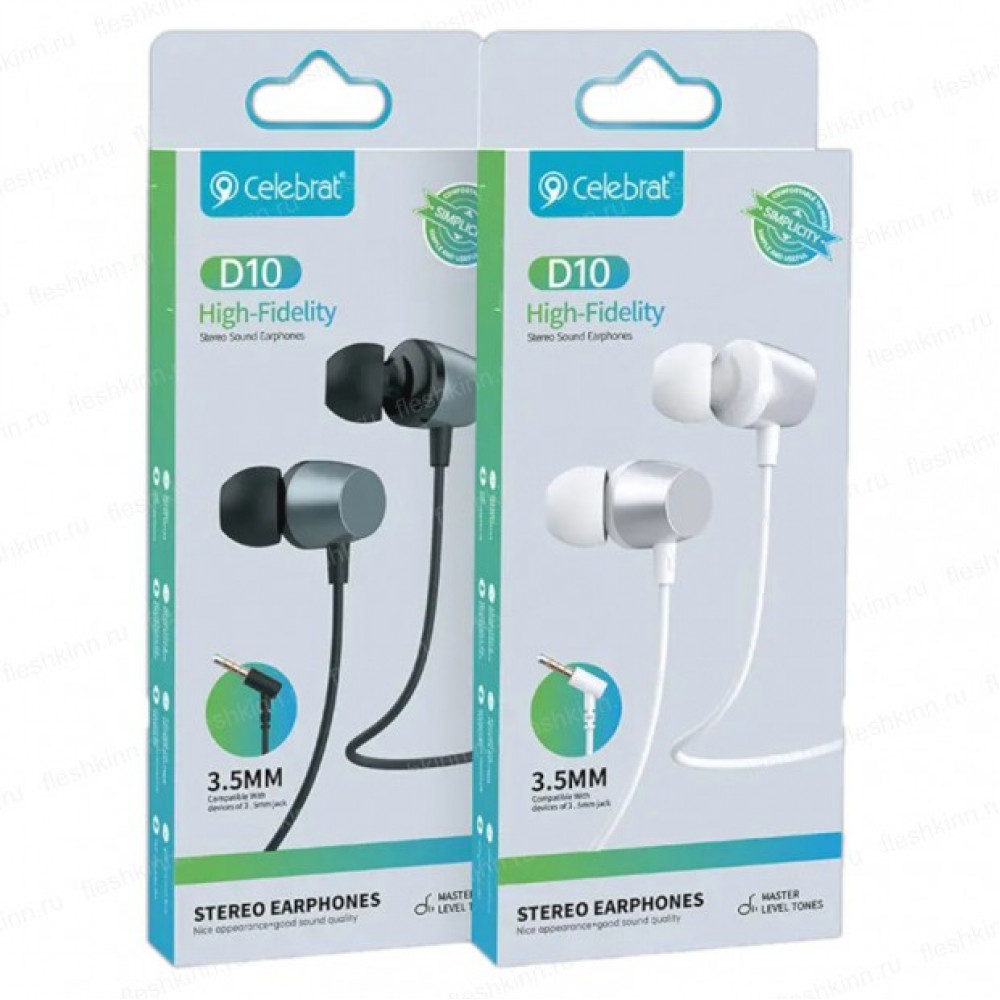 Проводные наушники CELEBRAT D10 с микрофоном, стереонаушники с разъёмом 3,5 мм, белые