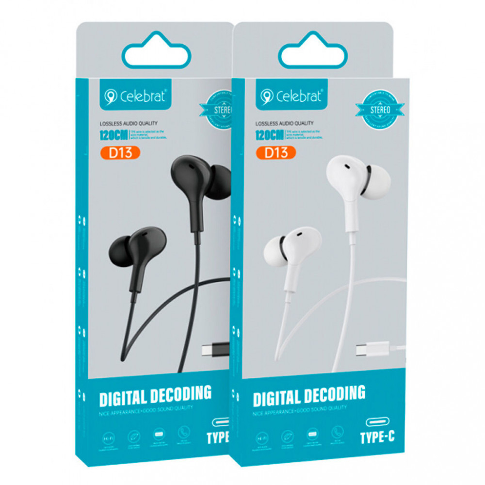 Наушники Celebrat D13 c микрофоном , Type-C, White