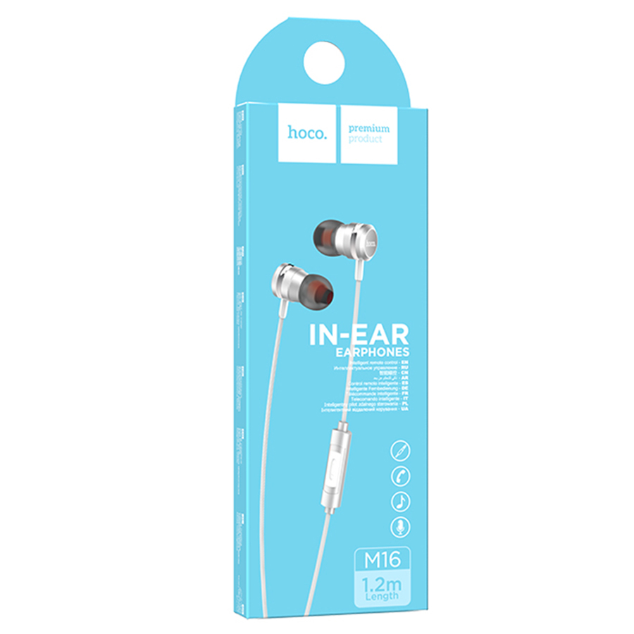 Проводные наушники-вставки с микрофоном Hoco M16 серебряный