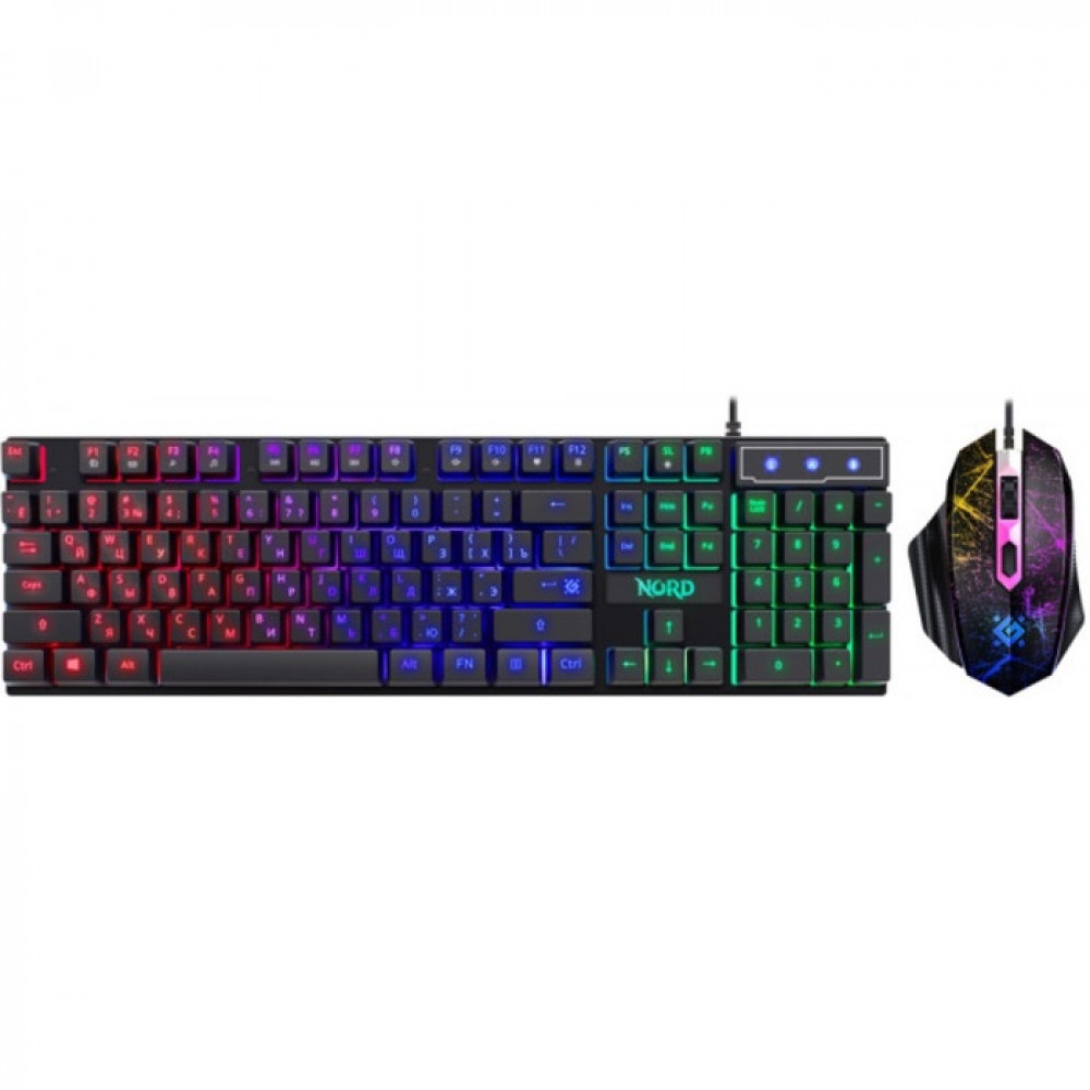 Стильный проводной игровой набор. У клавиатуры классическая полноразмерная раскладка с увеличенными клавишами-модификаторами и возможностью управления мультимедийными программами. Мышка имеет эргономичную форму, радужную подсветку и 4 режима разрешения.