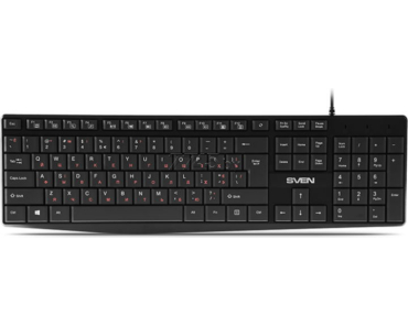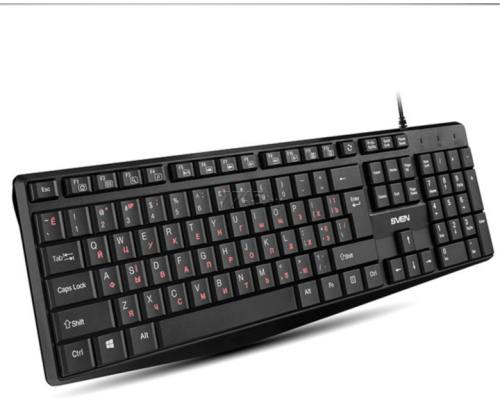 стандартная для ПК, мембранная, пластик, интерфейс подключения - USB-A, кириллица: да, цвет черный