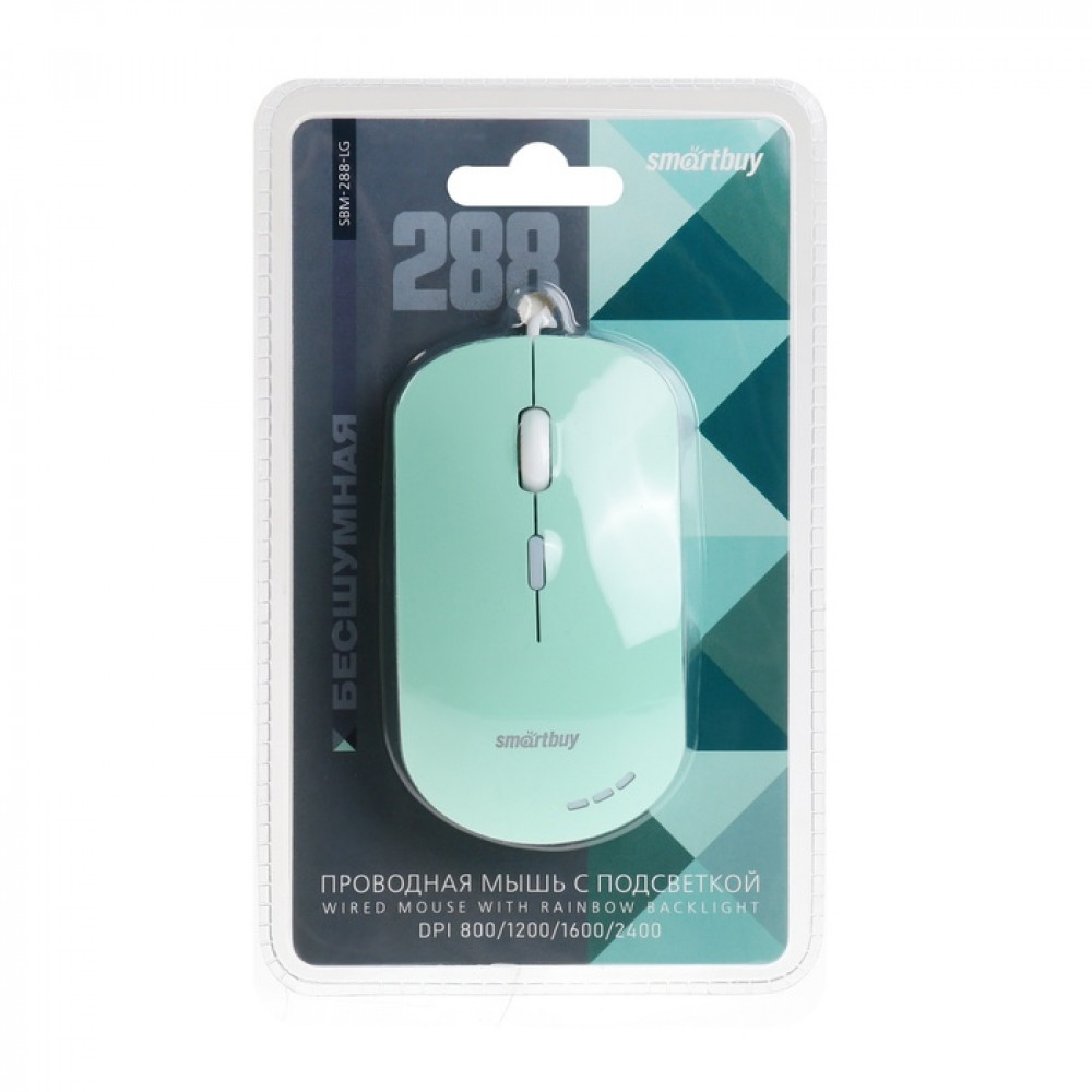 Технические характеристики Опт. мышь SB 288 зеленая, беззвучная с подсветкой
