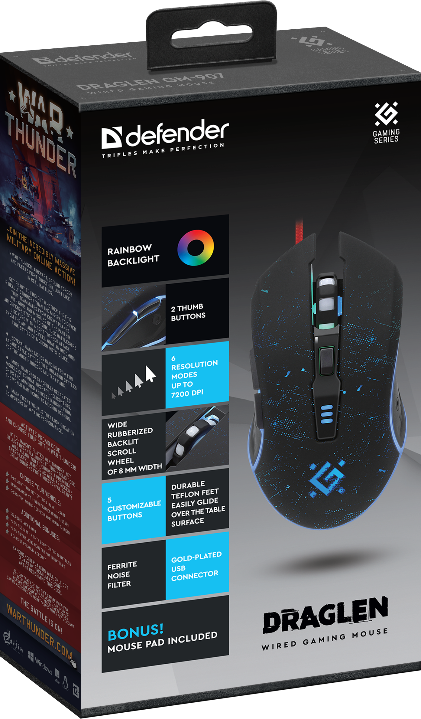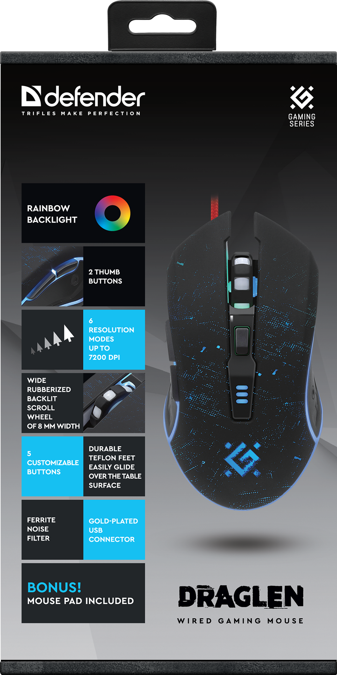 Технические характеристики Проводная игровая мышь Defender Draglen GM-907