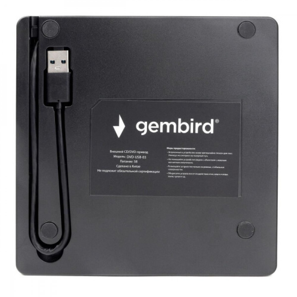 Надежный в работе и функциональный внешний оптический привод Gembird DVD-USB-03C предназначен для проигрывания различных типов дисков. Устройство поставляется в упаковке - BOX. Для загрузки дисков в устройство используется Лоток. Внешний оптический привод имеет свой определенный рядом особенностей. Основным отличительным преимуществом представленной модели является её мобильность. Нет необходимости устанавливать Gembird DVD-USB-03C в корпус компьютера, ведь достаточно подключить привод к ПК или ноутбуку с помощью интерфейса USB 3.0. Внешний привод поддерживает диски размером 12 см/8 см. В режиме чтения представленная модель способна воспроизводить CD-R/CD-RW/DVD-ROM диски. Привод совместим с дисками CD-R/CD-RW/DVD±R/DVD±RW в режиме записи информации. Для изготовления корпуса устройства использован качественный пластик. Сам корпус имеет небольшие размеры, может похвастаться строгим лаконичным дизайном и окрашен в черный цвет. С помощью Gembird DVD-USB-03C вы сможете считывать информацию с оптических дисков, установить игру, программу или приложение, просмотреть кинофильм, прослушать любимый музыкальный альбом, а также записывать данные с высокой скоростью.