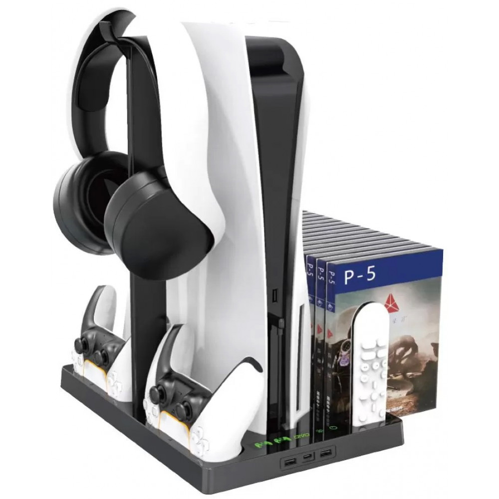 Подставка для вертикальной установки консоли + охлаждение + зарядная станция для 2-х геймпадов + держатель для дисков OIVO (IV-P5246) (PS5)