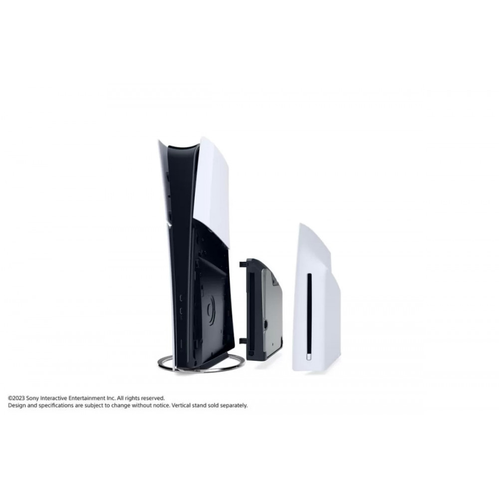 Новая PS5 Slim была уменьшена в объеме более чем на 30%, а вес - на 18% и 24% по сравнению с предыдущими моделями. Есть четыре отдельные панели крышки, верхняя часть которых имеет глянцевый вид, а нижняя часть остается матовой.