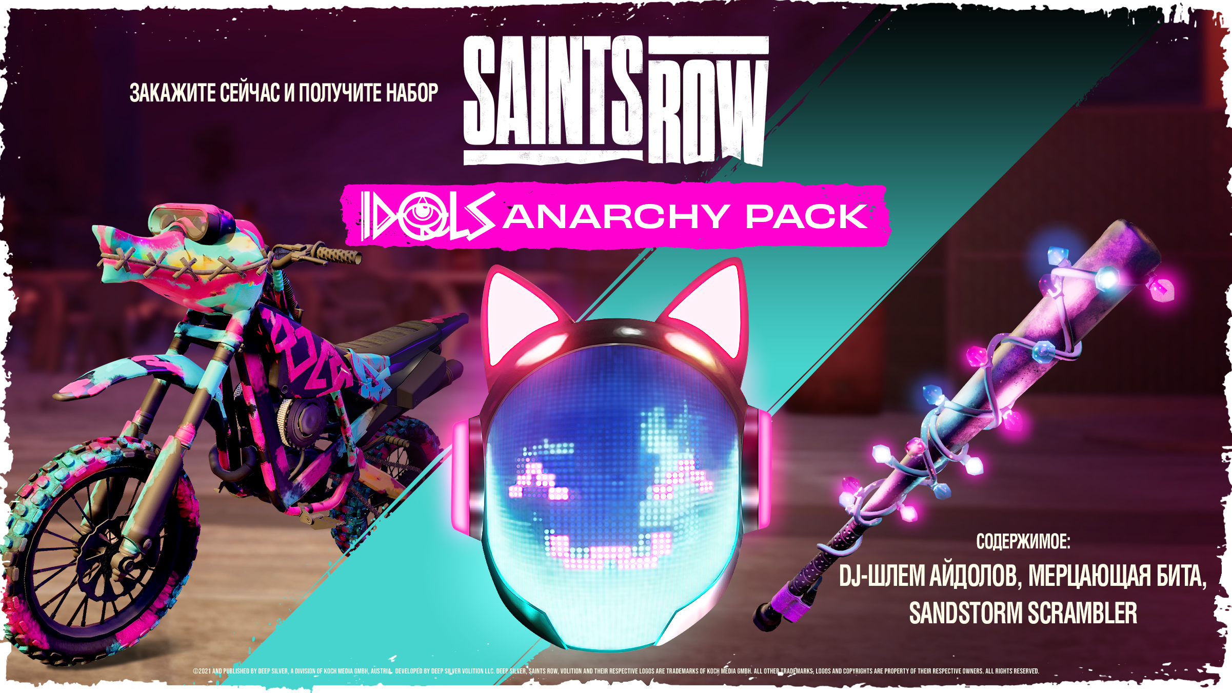 - Цифровой контент – The Idols Anarchy Pack: DJ-шлем айдолов, мерцающая бита, мотоцикл Sandstorm Scrambler.