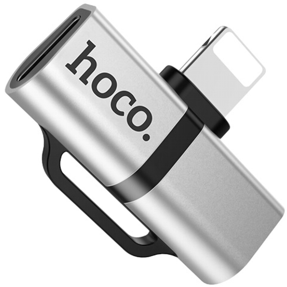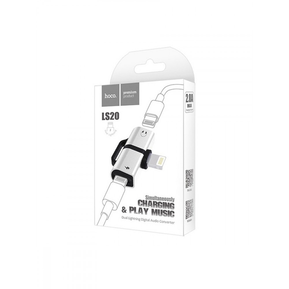 Адаптер Hoco LS20 Lightning - Lightning зарядка+Lightning аудио (серебристый)