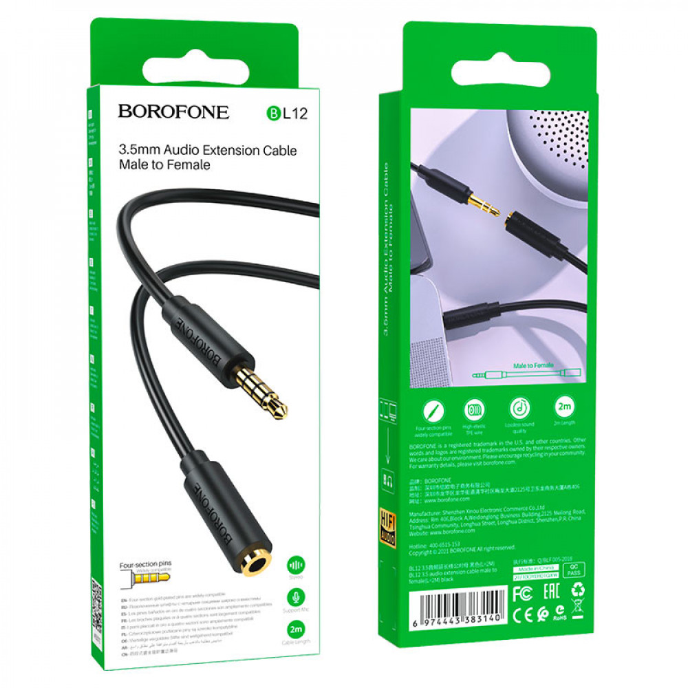 Технические характеристики Кабель Borofone BL12 3.5 Jack - 3.5 Jack (2 м, черный)