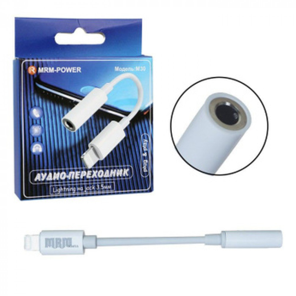 Аудио-переходник MRM-POWER M30 предназначен для подключения проводных наушников, колонок, AUX кабеля и других аксессуаров с разъемом Jack 3.5мм к устройствам Apple с разъемом Lightning.