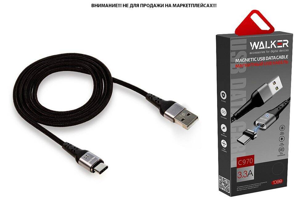 Дата-кабель WALKER C970 (овальный) USB - Type-C, магнитный, быстрый заряд (3.3А), черный