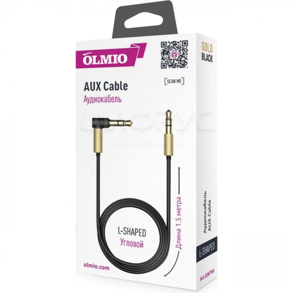 Кабель AUX Olmio 3.5(m)-3.5(m), 1.5м, угловой, черно-золотой