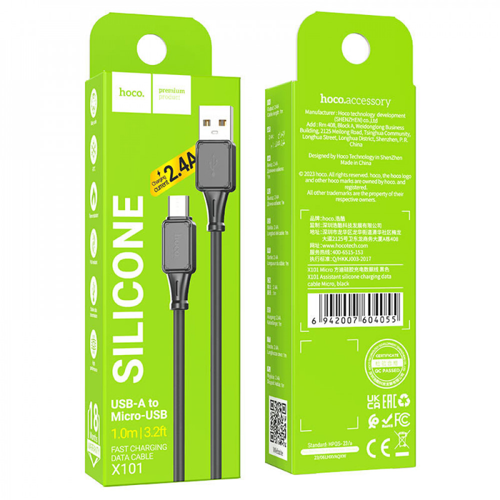 Кабель HOCO X101 USB - micro USB 2.4A, 1 метр, (Силиконовый) цвет: black