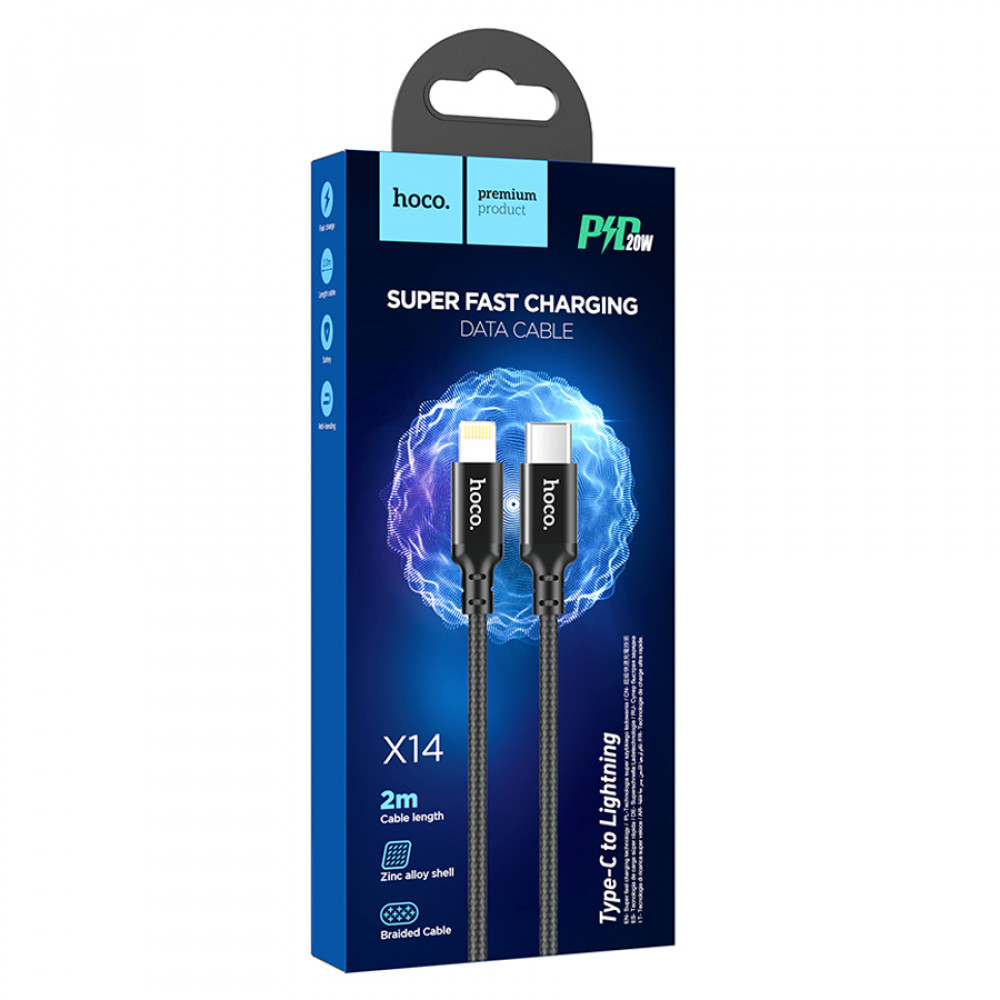 Кабель HOCO X14 Double speed PD charging data Tape-C for Lightning (L=1m) black