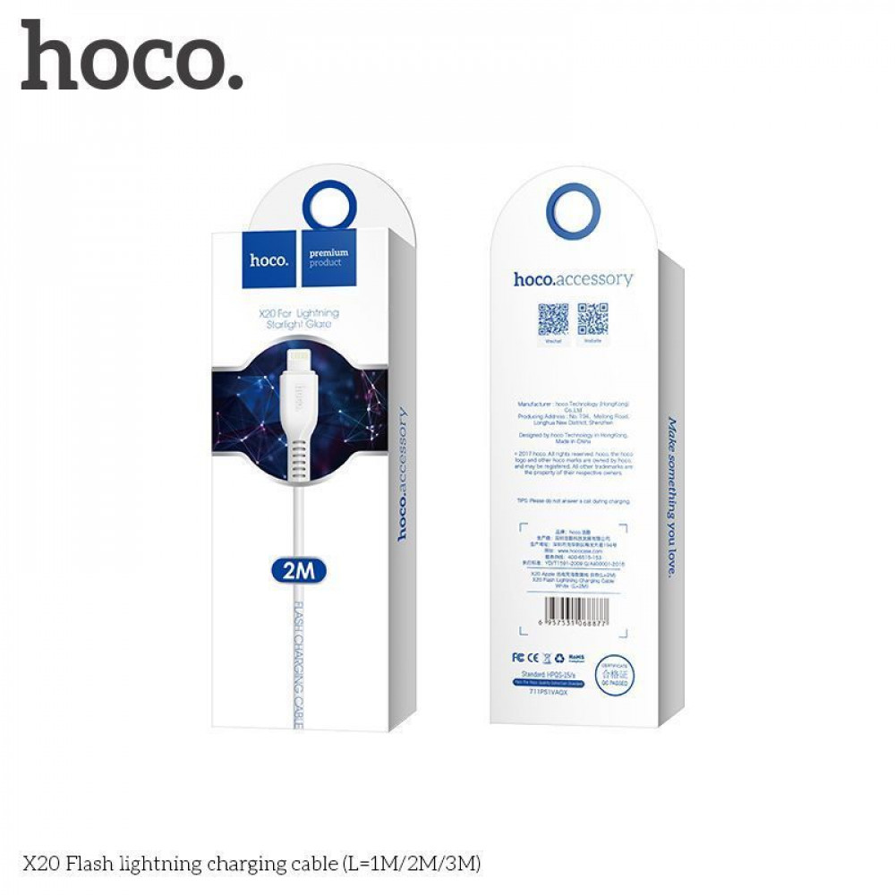 Технические характеристики Кабель Hoco X20 Lightning (2 м, белый)
