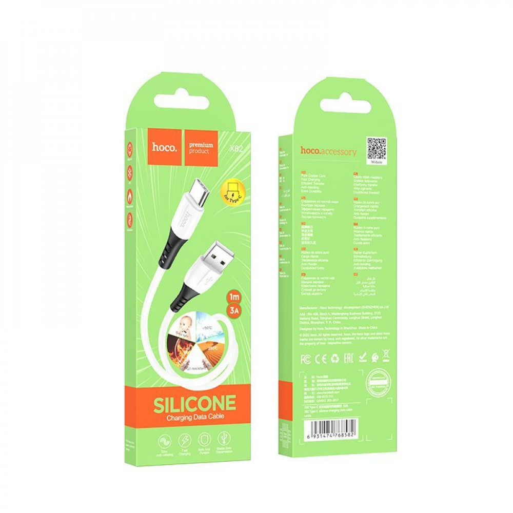 Кабель HOCO X82 USB - Type-C, 3A, 1м, (Силиконовый), white