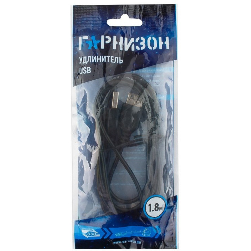 Технические характеристики Кабель-удлинитель USB2.0 Гарнизон GCC-USB2-AMAF-1.8M, AM/AF, медь, 1.8м, черн, пакет