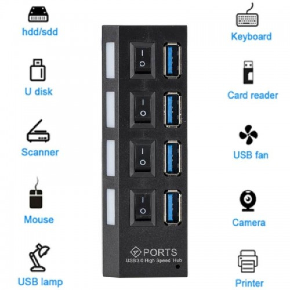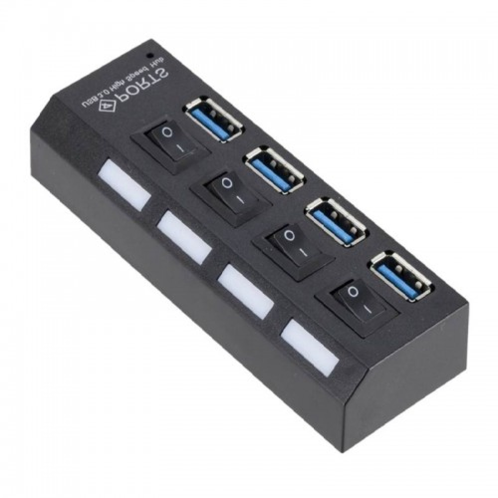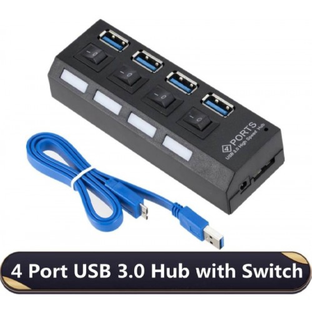 USB-Хаб 3.0 на 4 порта с Переключателями Вкл/Выкл, Блоком питания и LED подсветкой.