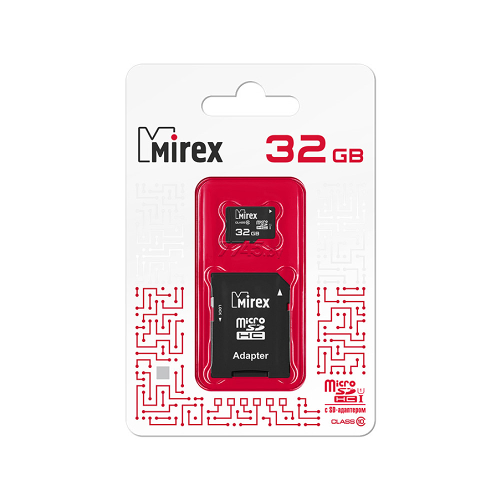 Карта памяти Card Micro 32Gb UHS-I Class 10 Mirex c адаптером 13613-ADSUHS32