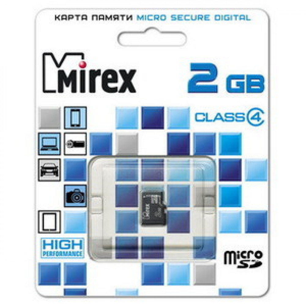 Технические характеристики Mirex microSD (Class 4) 2GB (13612-MCROSD02)
