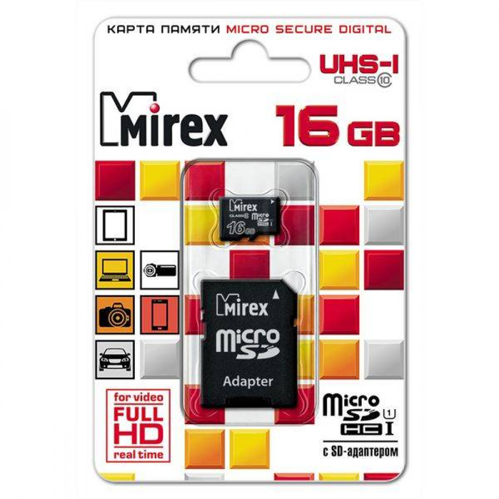 Технические характеристики Mirex microSDHC UHS-I (Class 10) 16GB + адаптер [13613-ADSUHS16]