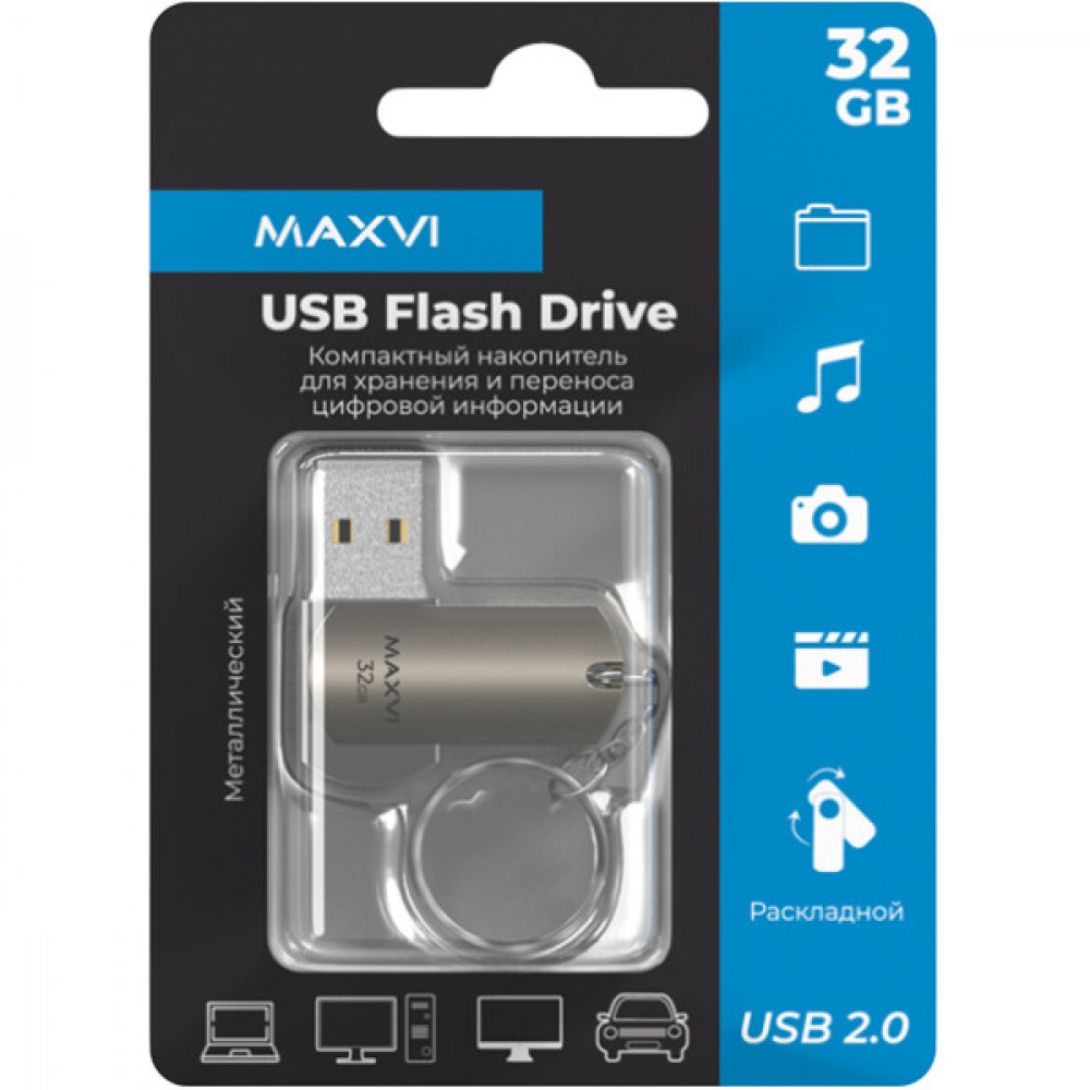 Компактный USB флеш-накопитель MAXVI предназначен для хранения и переноса любой цифровой информации, изготовлен в соответствии со всеми современными стандартами и требованиями к переносимым запоминающим устройствам.