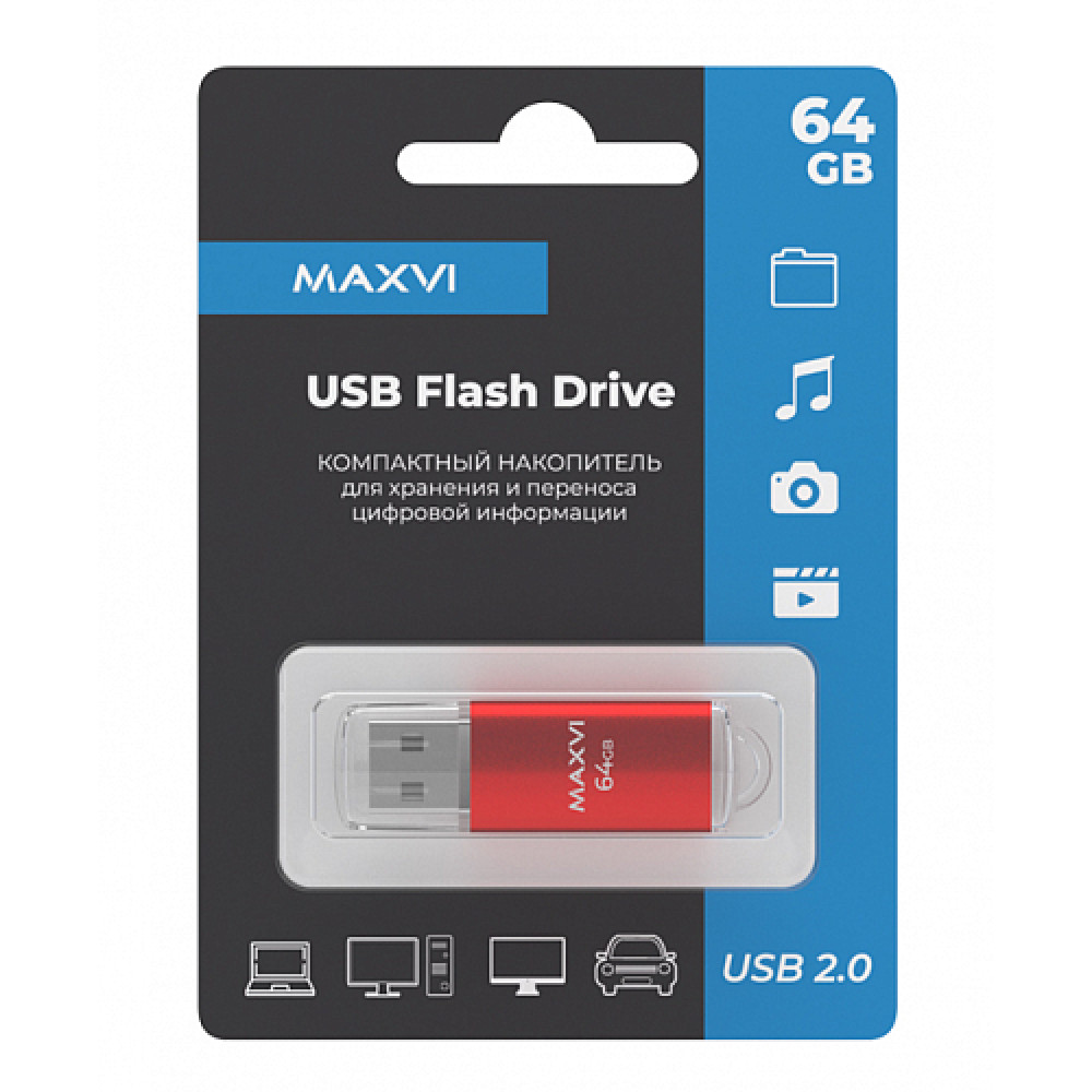 USB флеш-накопитель Maxvi MP 64GB 2.0 red FD64GBUSB20C10MP, Страна происхождения: КИТАЙ
