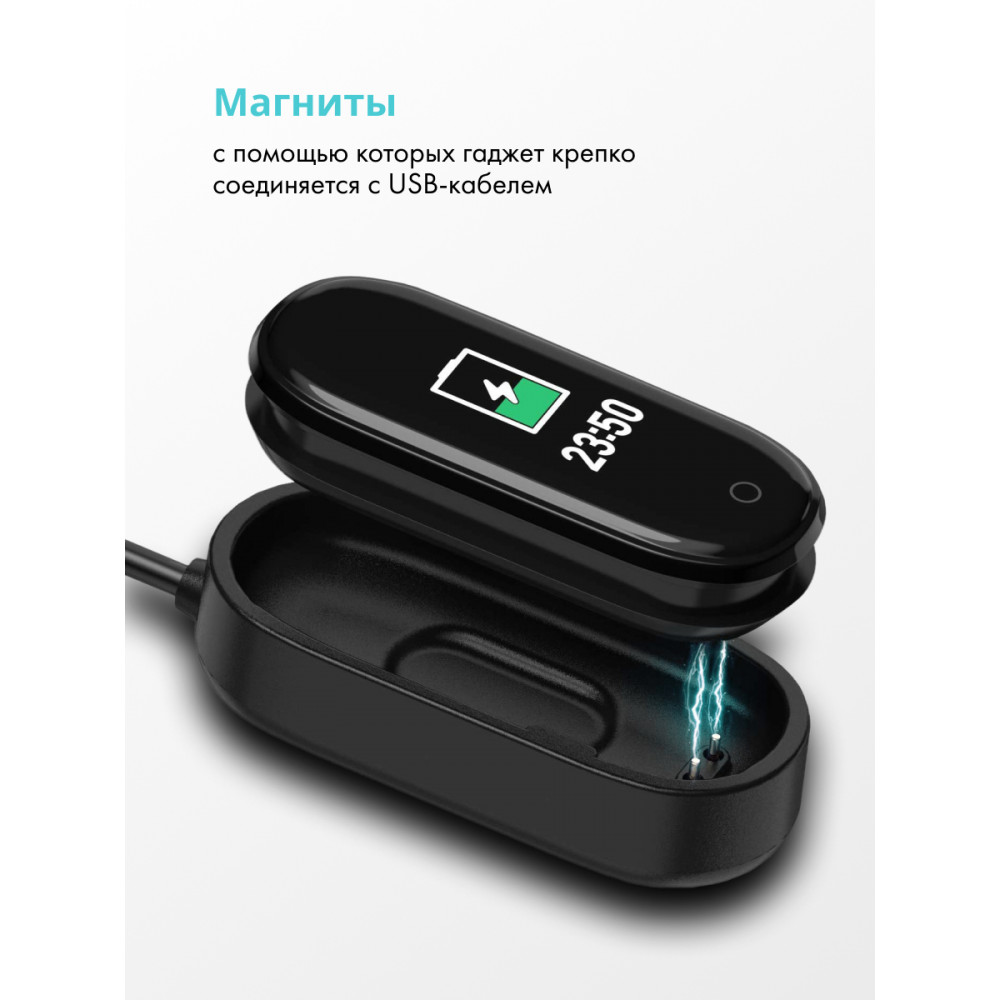 Зарядное устройство полностью совместимо с браслетом и сделано специально под Mi Band 4. Dыполнено в стандартном классическом черном цвете.