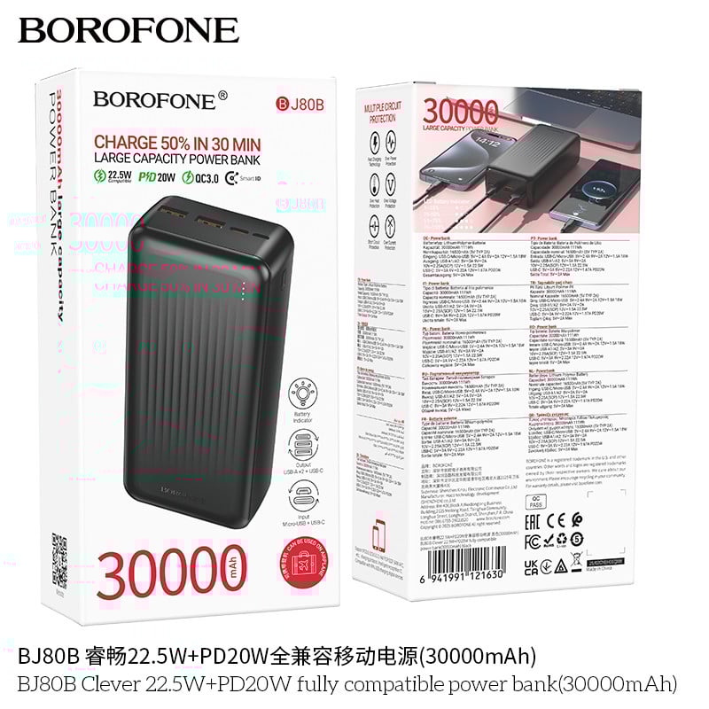 Внешний аккумулятор Borofone BJ80B 22,5W+PD20W 30000 mAh Black