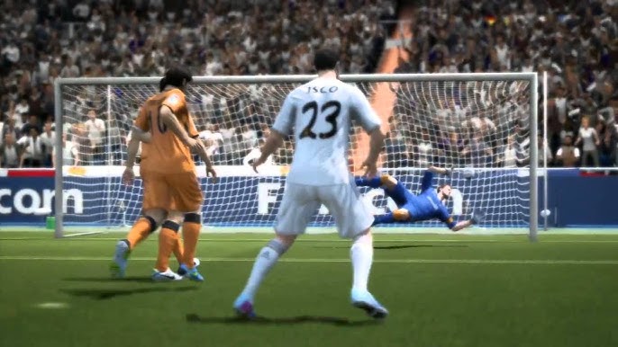 - В FIFA 14 улучшена система ударов. Теперь можно менять ширину шага виртуальных футболистов, выбирать угол подхода к мячу так, чтобы провести наиболее опасную атаку по воротам, а также пробивать спонтанно и даже из неудобного положения.
