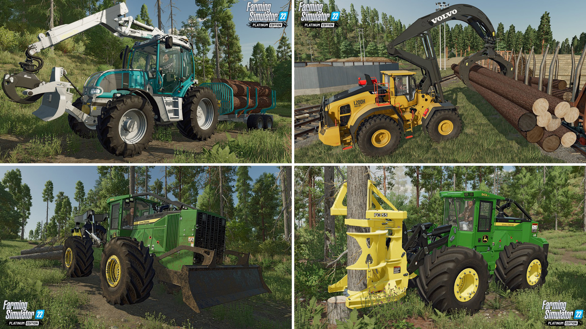 - Дополнение Platinum Expansion: более 40 машин и инструментов, локация Silverrun Forest, новые виды деревьев и эффектов окружающей среды, свежие игровые механики — разметка деревьев, новые производственные цепочки и задания по строительству лодок.